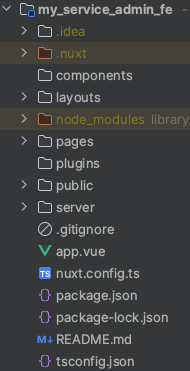- Nuxt3 프로젝트를 생성했다면 프로젝트 디렉토리에 기본으로 생성되는 디렉토리와 파일들이 생겨있다.