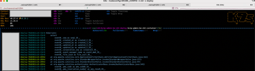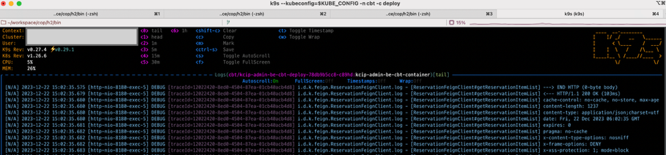 애플리케이션이 다중화 되어있는 경우 각 Pod에 하나하나 들어가보지 않고도 deploy, svc 레벨에서 L 키를 입력하여 하위 Pod에 대한 로그를 한 번에 확인할 수 있다.